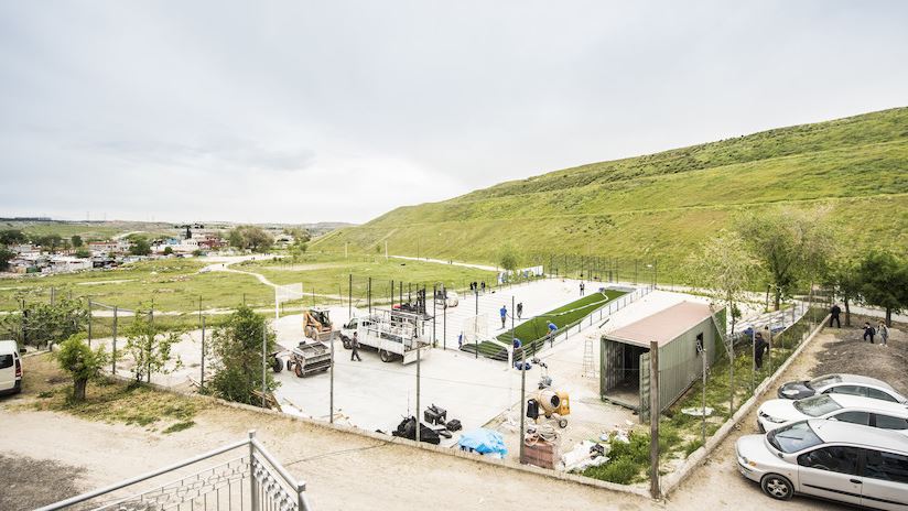 Op 14 mei 2016 is het eerste Field in a box™ systeem in Europa geopend in Cañada Real Galiana, een achterstandswijk in de Spaanse hoofdstad Madrid. De aanleg is gefinancierd door FedEx, wereldwijd leverancier van koeriers- en logistieke diensten, die ook het transport van het systeem verzorgde.